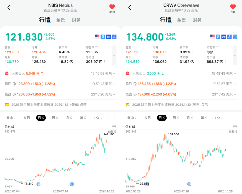 把它们看作“加了杠杆的英伟达”可能更贴切,这意味着,它们的涨跌波动,往往会比英伟达来得更早、更猛。市场上任何关于“AI泡沫要破”、“数据中心需求见顶”的风吹草动,都可能让这两只股票率先跳水。