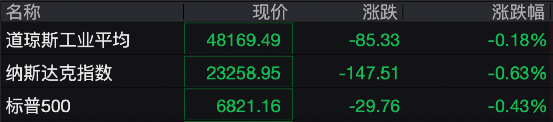 11月13日,美股 三大指数开盘齐跌 ,道指跌0.18%,标普500指数跌0.43%,纳指跌0.63%。