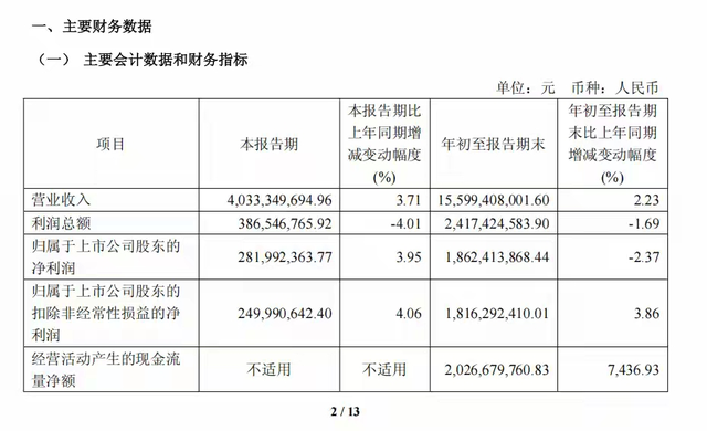 早在9月,该公司发布公告拟在境外发行股份(H股)并在香港联交所上市,来到10月底,海澜之家公布三季度财报,前三季度营收155.99亿元,同比增长2.23%,归属于上市公司股东的扣除非经常性损益的净利润18.16亿元,增长3.86%,而第三季度营收则达到了40.33亿元。