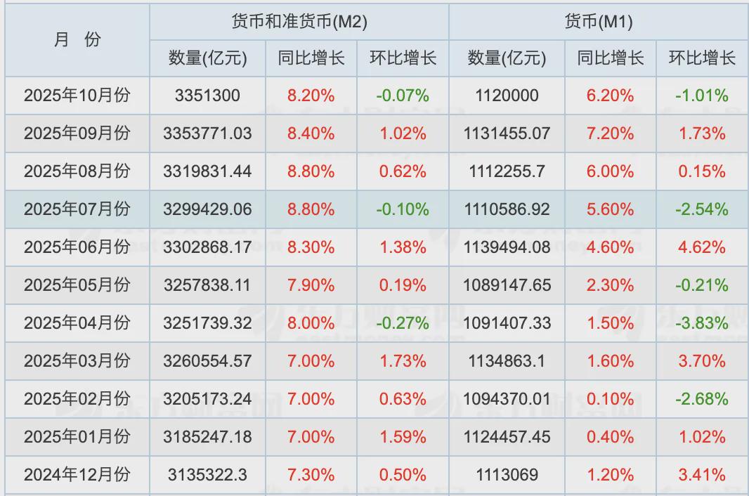 11月13日,央行公布最新的金融数据,10月末,广义货币(M2)同比增长8.2%,狭义货币(M1)同比增长6.2%。M1-M2剪刀差再次缩小了。比如8月份是2.8%,9月份是1.2%,10月份降到1%。