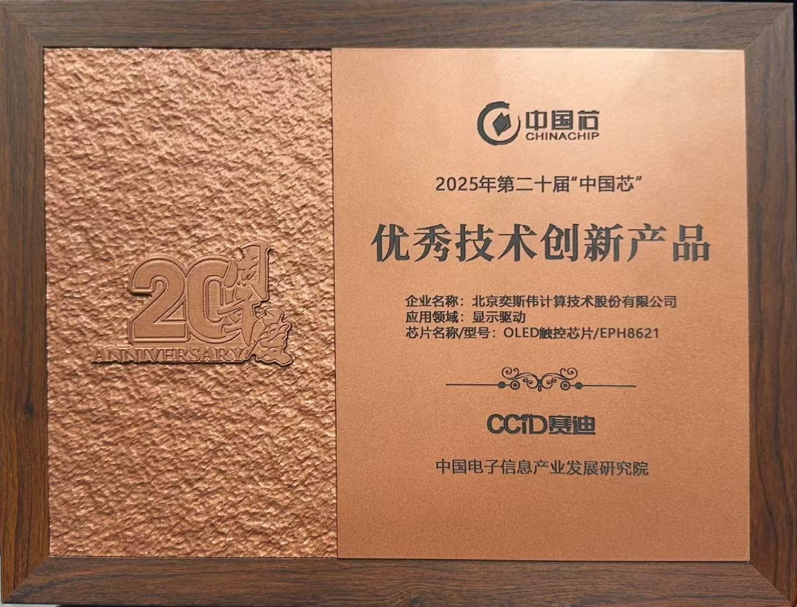 11月14日,2025年“中国芯”集成电路产业促进大会暨第二十届“中国芯”优秀产品征集结果发布仪式顺利举行。作为国内集成电路领域极具影响力与权威性的行业盛会,大会现场揭晓了优秀产品征集结果,奕斯伟计算人机交互解决方案的核心产品之一RISC-V OLED触控芯片EPH8621系列凭借技术创新优势,成功斩获“优秀技术创新产品”奖,彰显了奕斯伟计算的技术创新实力与行业影响力。
