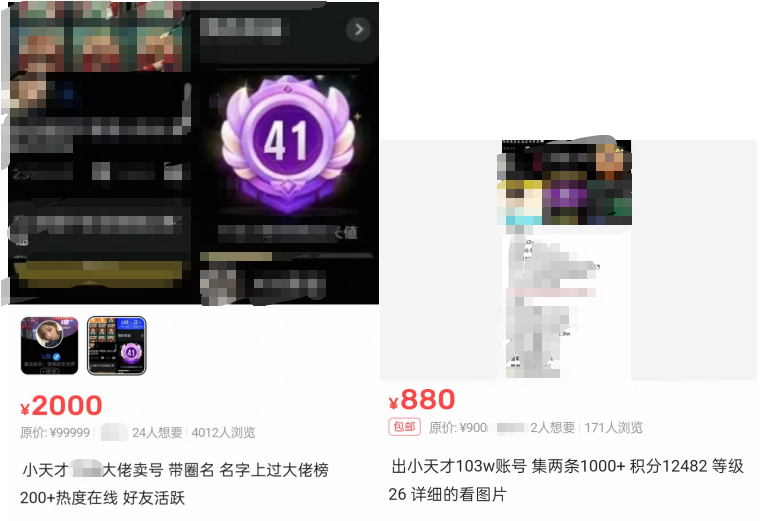 有了对数据的攀比心理,电商平台出现了账号买卖、破解等交易。