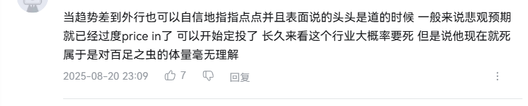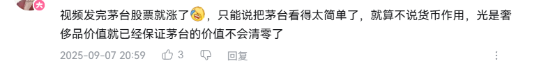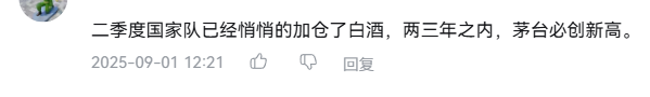 评论区来了一波白酒股的持有者,有的说你这是穷人思维,有的人说白酒应声上涨,还有的人说白酒看的太简单了,说一个外行在这里指指点点,可以开始定投了。