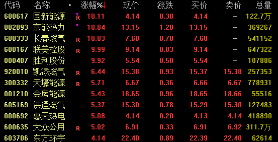 燃气板块盘中大幅走高,截至收盘,国新能源、京能热力、长春燃气、联美控股等涨停,胜利股份斩获4连板。