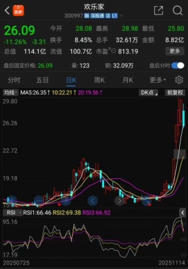 值得注意的是,股价的短期狂热与公司基本面形成鲜明背离。欢乐家近年经营业绩持续承压,2024年归母净利润同比下滑47.06%,2025年前三季度营收和净利润同样出现下滑。