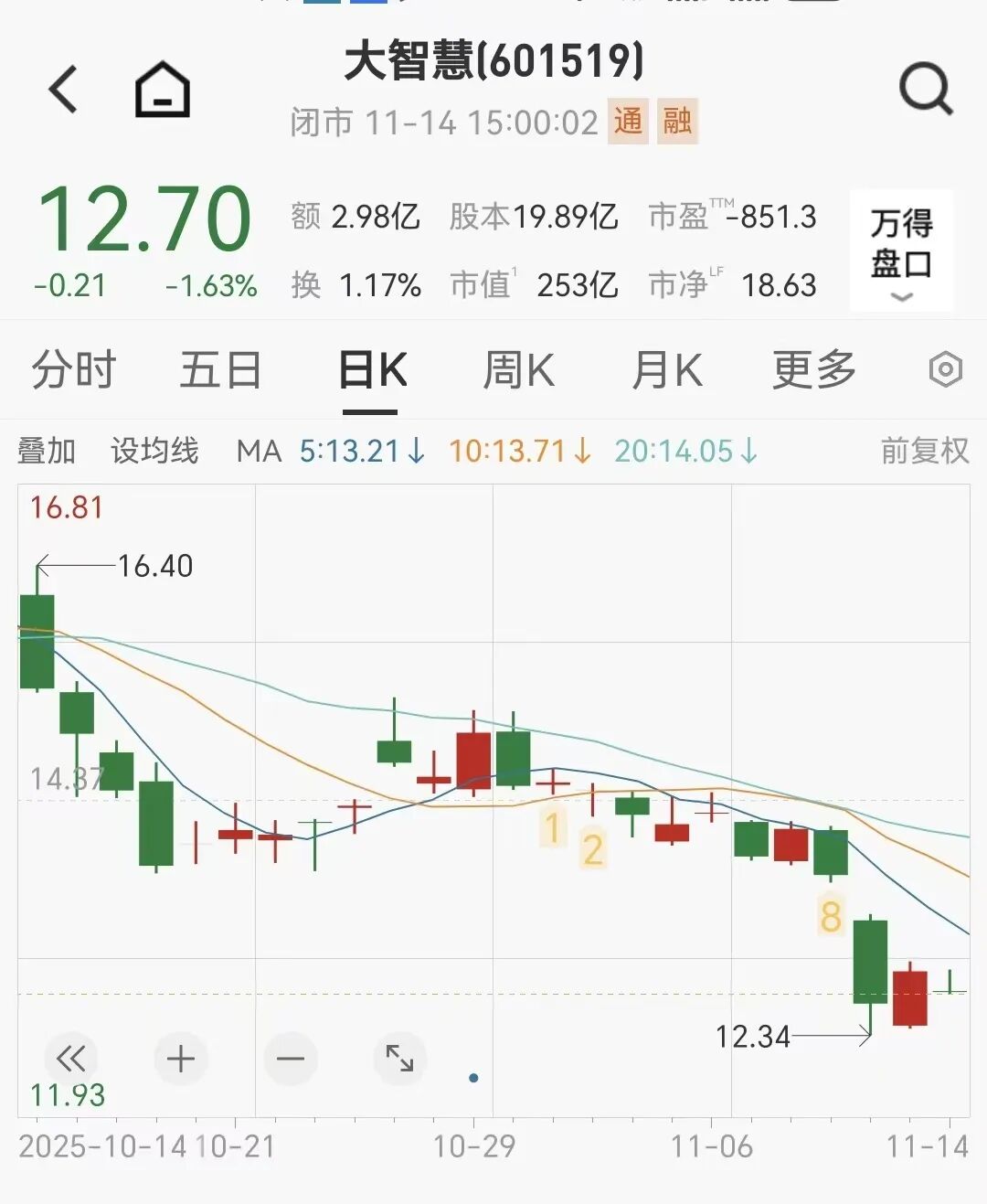 自诉讼公告发出后,短短3个交易日,大智慧市值缩水约20亿元,湘财股份蒸发约34亿元。截至11月14日,大智慧市值为253亿元,湘财股份市值为328亿元。