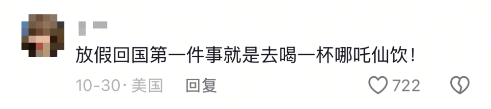各地留子们也在评论区玩梗:等我回国一下飞机,就去喝一杯哪吒x饮。