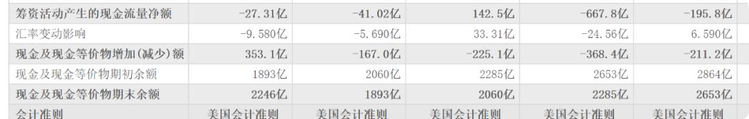 账面上确实挺好看,有个问题需要注意,这一季的经营现金流,从336.4亿直接跳水到206.7亿,降幅整整39%。期末现金及现金等价物余额为2246亿元,相比去年同期的2653亿元,减少了407亿元。