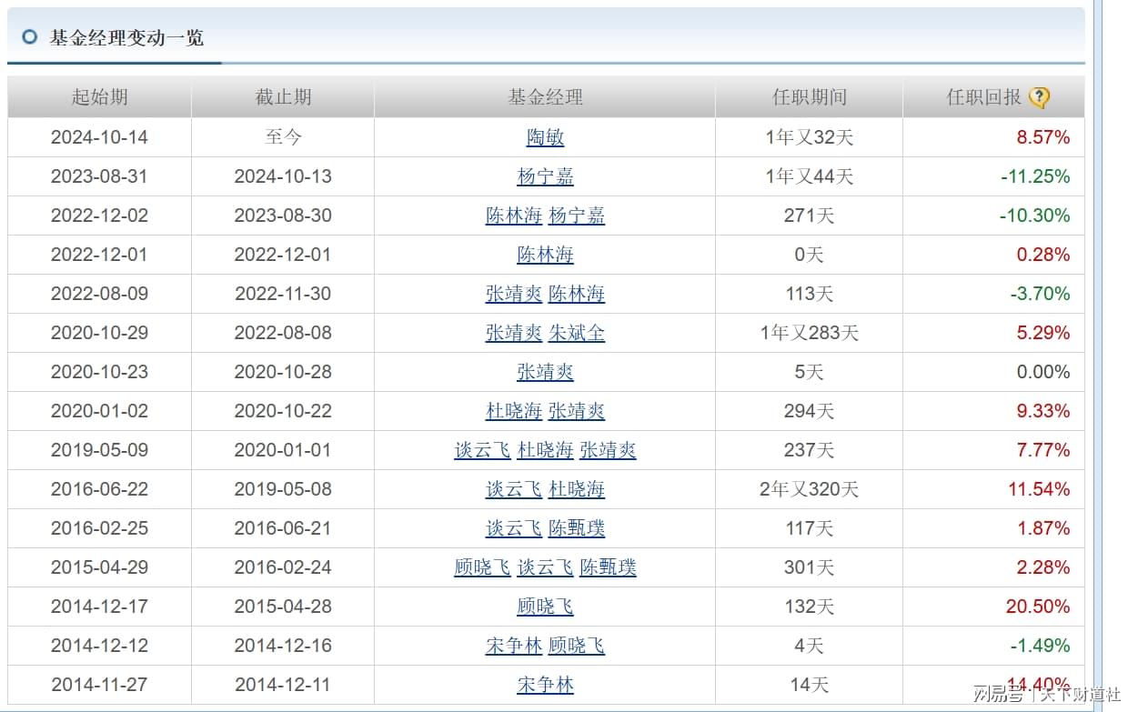 以海富通新内需混合基金为例,这只基金成立于2014年,截至目前,已经经历了近15次的经理变更。