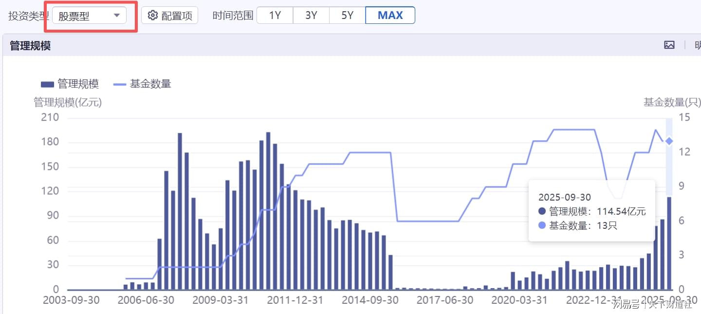 同花顺数据显示,截至2025年三季度末,海富通总管理规模约2545亿元,在全市场公募基金公司中排名第32,看似位置还比较靠前。