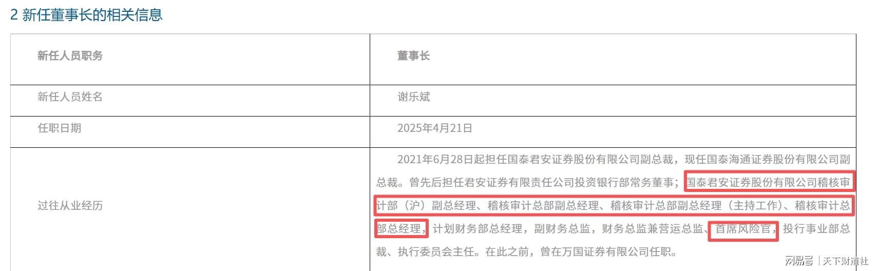 资料显示,谢乐斌如今还在国泰海通证券担任副总裁的职务,更早之前,其曾有担任国泰君安证券稽核审计部(沪)副总经理、稽核审计总部副总经理、稽核审计总部副总经理(主持工作)、稽核审计总部总经理,首席风险官等相关工作经验,风控管理经验较为丰富,还被业内公认为“风控专家”。