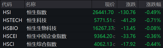 11月17日,香港恒生指数开盘跌0.49%,恒生科技指数跌0.71%。