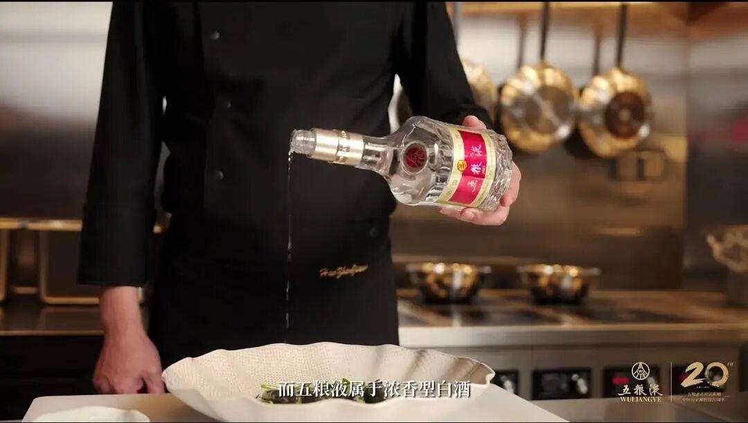 “普通料酒或单粮酒中的酒分子容易破坏肉类的纤维蛋白结构,而五粮液以52度为主,酒精度适中,并且它的发酵工艺复杂,富含更多的鲜味物质,不仅能替代部分糖和味精,还能实现真正的五味调和。”