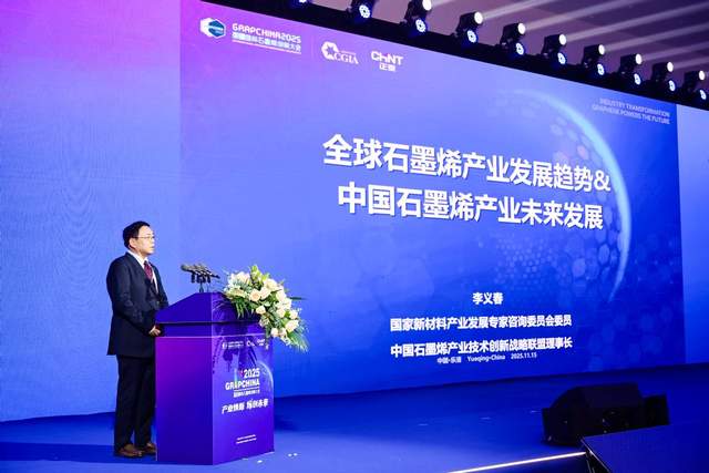 国家新材料产业发展专家咨询委员会委员、中国石墨烯联盟(CGIA)理事长、2025中国国际石墨烯创新大会主席李义春在开幕式上作《全球石墨烯产业发展趋势&中国石墨烯产业未来发展》主旨报告,彰显我国石墨烯产业十年发展硕果。