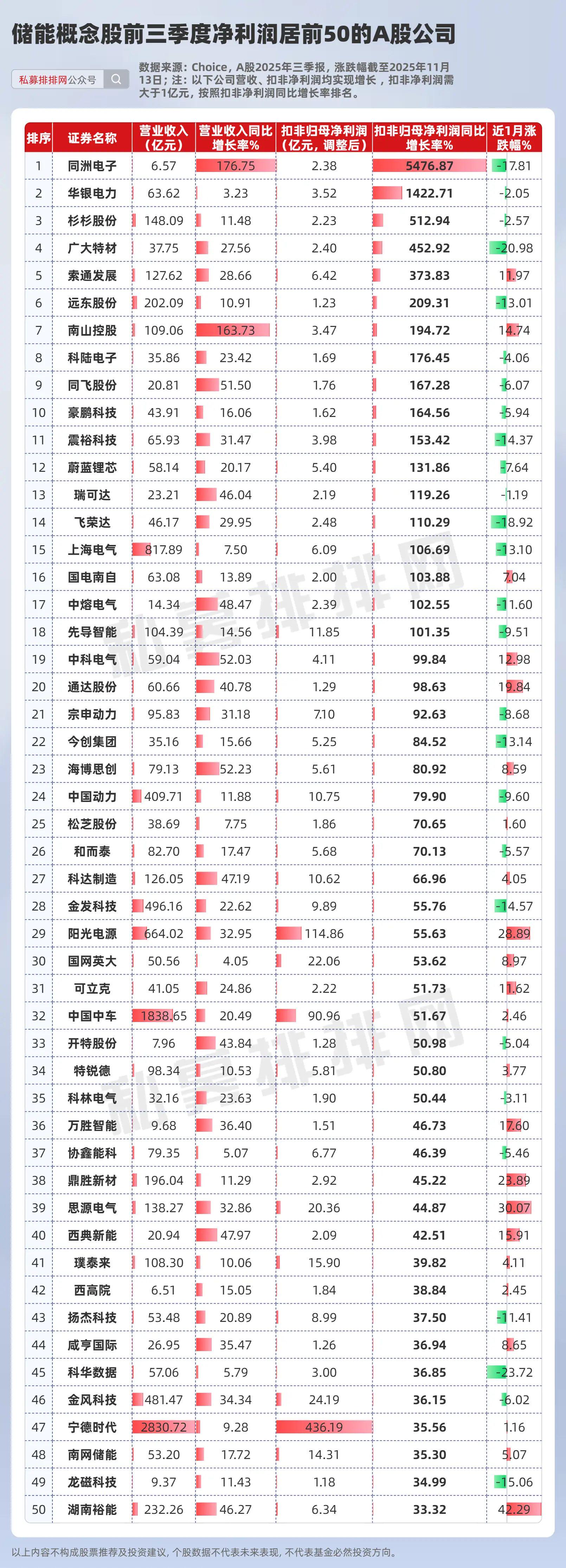 在此基础上,笔者为大家筛选出,2025年前三季度扣非净利润位居前50的储能概念A股公司,供大家参考。其中,同洲电子扣非净利润增长率位居首位,达到54.77倍。(点此领取名单)