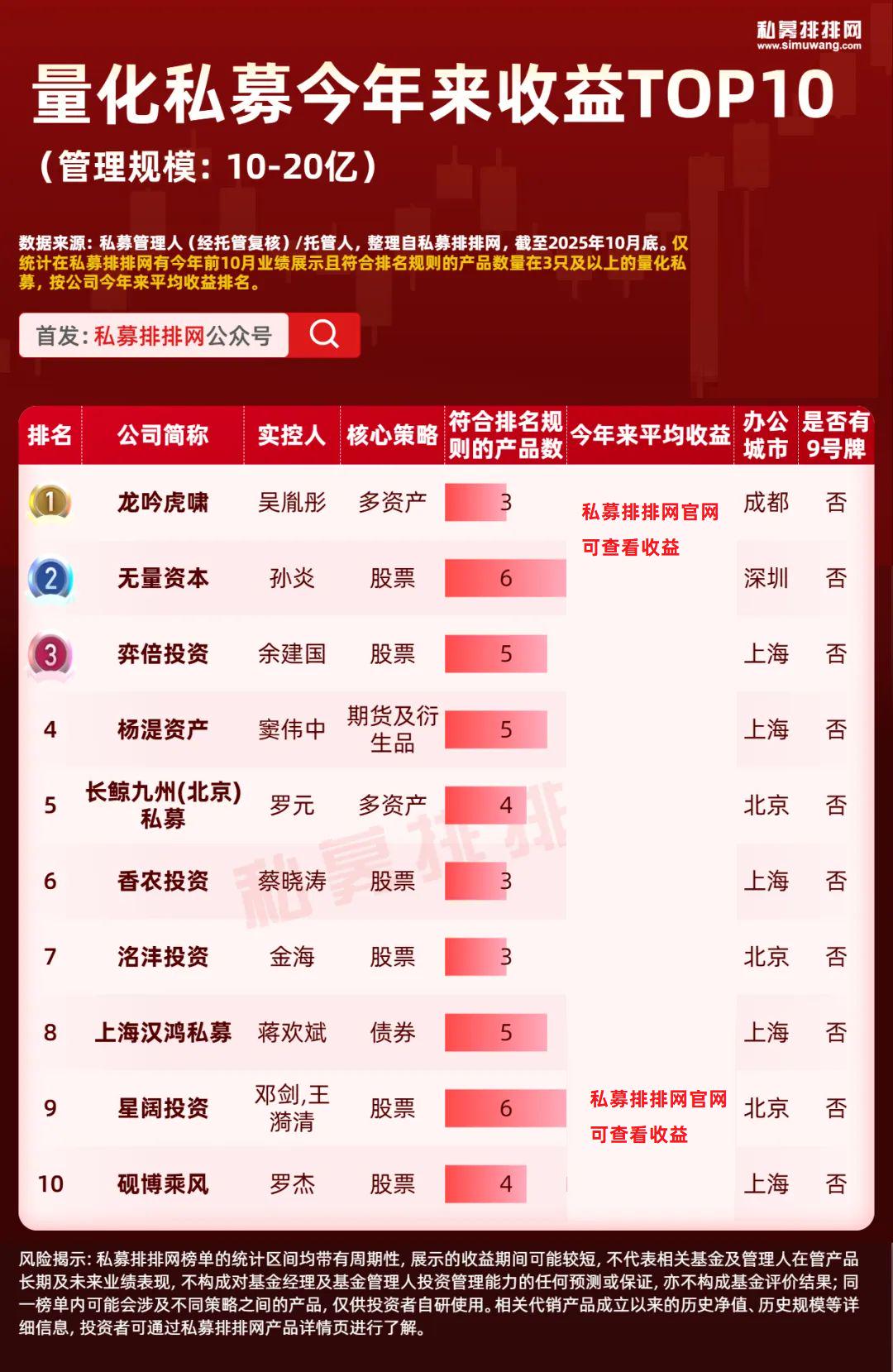 10-20亿:龙吟虎啸、无量资本、弈倍投资位列前3