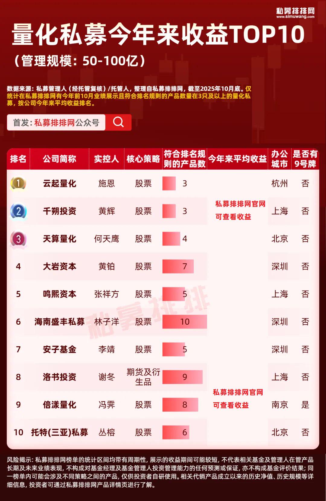 50-100亿:云起量化夺得第1!3家私募规模跃升