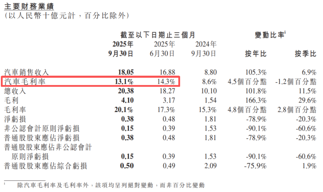 三季度,小鹏的汽车毛利率只有13.1%,而二季度还是14.3%。