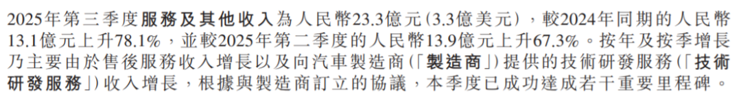 三季度,这部分收入达到了23.3亿,同比增长78.1%,估计跟向大众汽车提供技术输出有关。