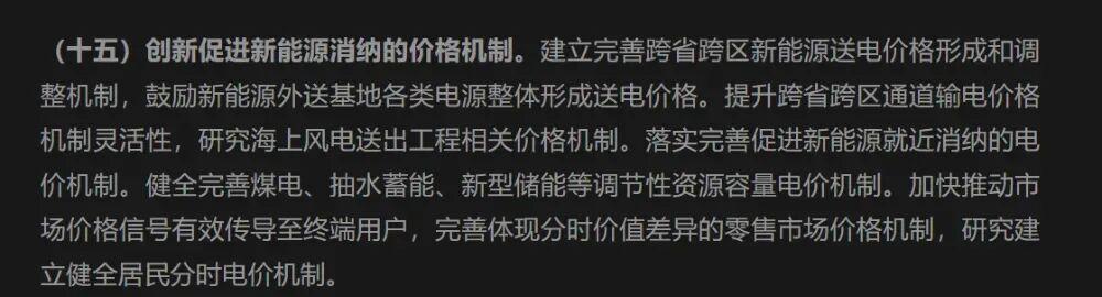 文件的15节部分提到,健全完善煤电、抽水蓄能、新型储能等调节性资源容量电价机制。加快推动市场价格信号有效传导至终端用户,完善体现分时价值差异的零售市场价格机制,研究建立健全居民分时电价机制。