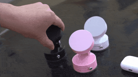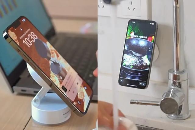 田文和他的团队花了将近6个月时间,改了39次技术方案,不断调整参数,经过300次跌落测试,最终做出采用磁吸加拨片真空抽压设计的新品,能“咔嚓”一下吸上,又能轻松取下的支架,能放在桌上、汽车上,在浴室、厨房、餐桌等多场景,“只要是光面的地方都可以吸”。