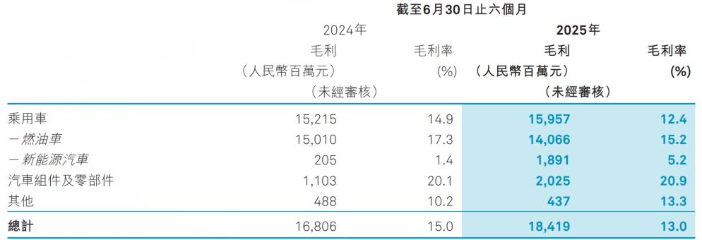 奇瑞的营收增长同样隐藏着结构性问题。2022-2024年,奇瑞营收从926亿元增长至2699亿元,复合年增长率高达约71%。但这种增长速度到了2025年出现明显放缓的趋势。与此同时,奇瑞的综合毛利率持续承压。2025年上半年,奇瑞综合毛利率同比减少近两个百分点至13%,其中乘用车毛利率同比减少2.5个百分点至12.4%。这一数据明显低于同期比亚迪、长城和吉利的毛利率水平。