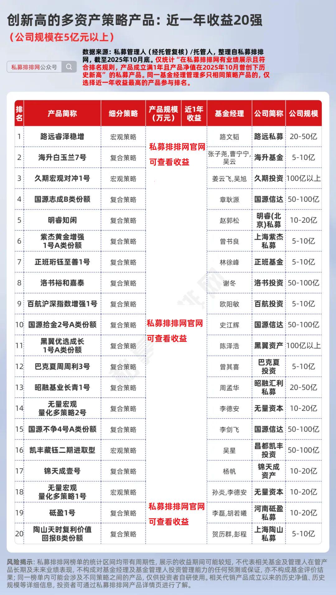 其中,冠军产品是路远私募旗下路文韬管理的“路远睿泽稳增”。该产品最新规模约为***亿元,近一年收益超***%。该产品成立于2018年9月11日,截至2025年10月底,运作已经超7年,成立以来年化收益超***%。