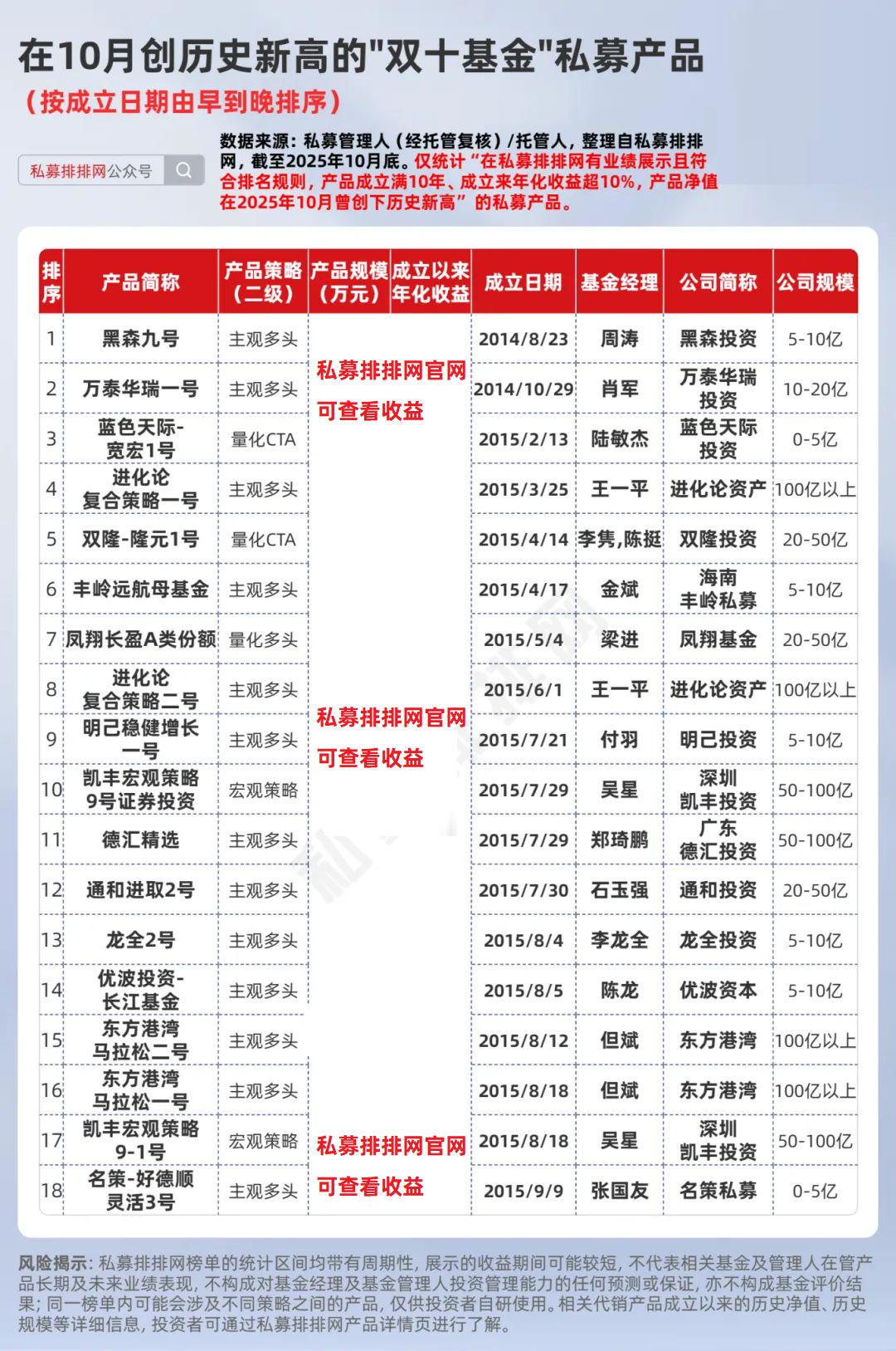 其中,东方港湾但斌管理的“东方港湾马拉松一号、东方港湾马拉松二号”,2只产品均成立于2015年8月,截至2025年10月底,成立以来年化收益分别超***%,今年1-10月收益均超***%。