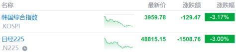继昨日巨震之后,日经225指数今日盘中暴跌超1500点,大跌超3%跌破49000点关口;韩国综合指数午后也大跌超3%。
