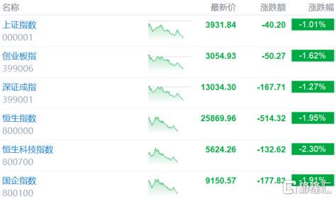 港A股低开低走,午后跌幅加大。创业板指、深成指盘中翻红后又再度转跌,恒科指现跌超2%,恒指、国指跌超1%。