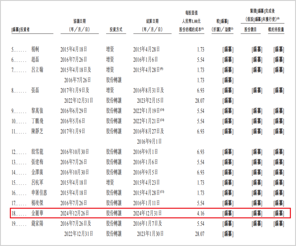 然而,仅一年半之后,即2022年12月,公司股权转让价格便骤降至每股28.07元,估值大幅缩水至16亿元,较前期高点暴跌约38%。更令人瞩目的是,在正式递交港交所招股书前夕的2024年12月,一笔股权交易的价格已低至每股4.16元,较2022年12月的价格再次下跌超过85%。
