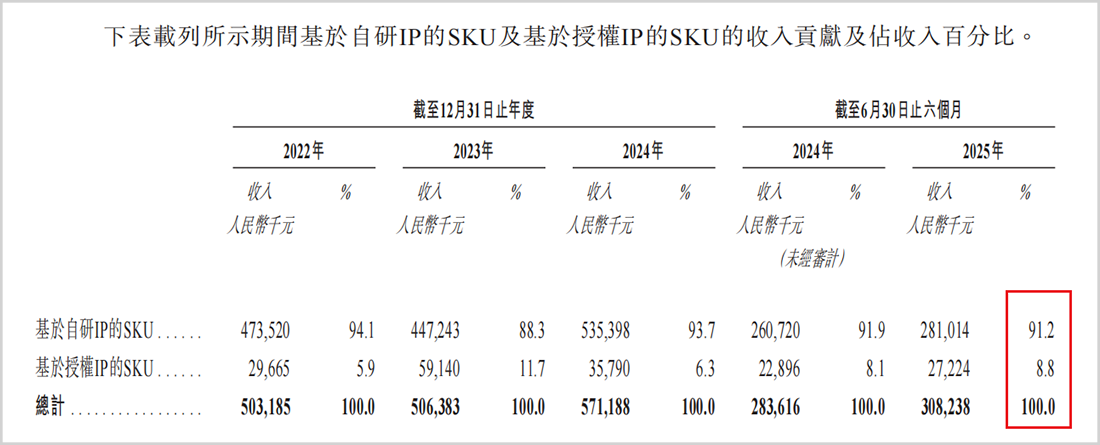 不仅如此,在铜制品IP的战略层面,铜师傅面临着明显的结构性矛盾。报告期内,公司自研IP收入占比始终维持在90%左右,而授权IP收入占比长期低于10%。这种失衡状态暴露了铜师傅在IP运营上的一大困境,自研IP虽贡献了九成以上营收,但市场号召力局限于传统文化圈层;授权IP虽阵容豪华,却始终难以实现有效变现。