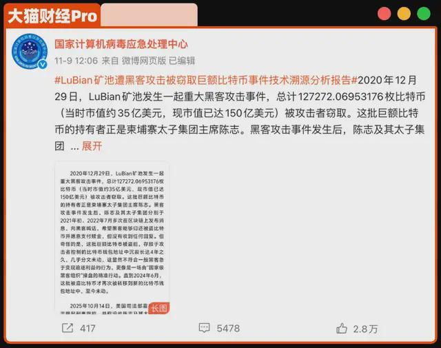 2020年12月29日,Lubian矿池被黑客攻击,2个小时的时间,127272枚比特币被黑客转走了,当时那些比特币价值35亿美元(约250亿人民币)。