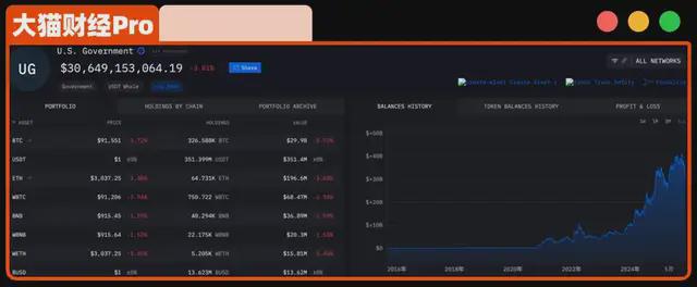 在一个被认证为“美国政府”的钱包,在2021年前,还只有零星的资产,而在2021年后,资产开始暴增,最近两年持币量和市值均是高峰。