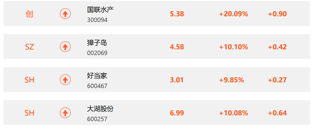 今日午后,水产养殖板块直线拉升。国联水产、獐子岛、大湖股份、好当家午后相继直线涨停。