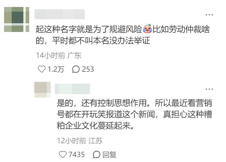 搞了一通花名制度,本来是想大家和平相处,平等称呼,结果到最后,反而有一部分人在入职的时候苦恼“这一个大厂和一个大厂的要求不一样,不让叫哥、姐,我到底该怎么称呼自己的同事和领导呢?”