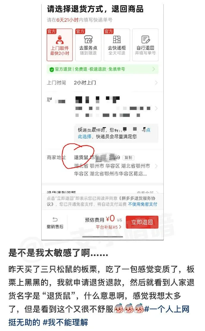 啥意思,难道是说顾客“退货就要鼠”吗?这可让人“倒吸了一口凉气”。