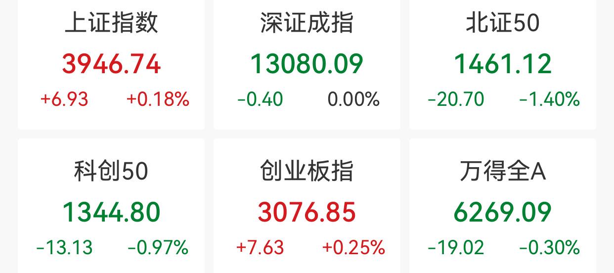 中新经纬11月19日电 19日,A股三大指数全天震荡,沪指、创业板指收涨。上证指数涨0.18%,报3946.74点;深证成指收平,报13080.09点;创业板指涨0.25%,报3076.85点。