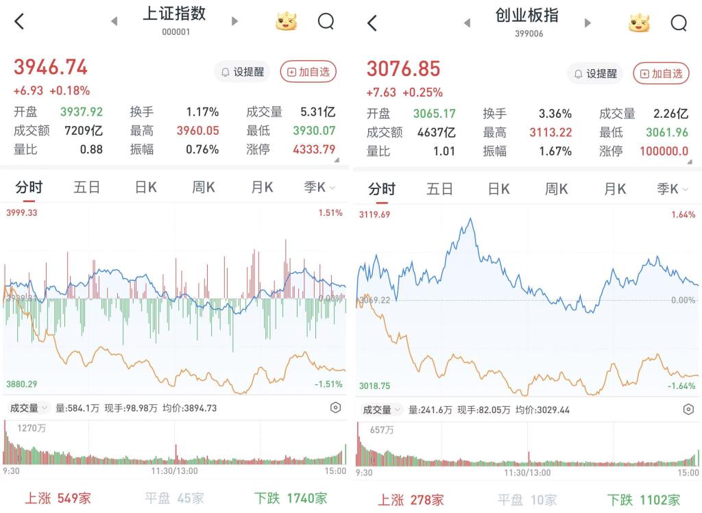 至收盘,上证综指涨0.18%,报3946.74点;科创50指数跌0.97%,报1344.8点;深证成指跌0.4点,报13080.09点;创业板指涨0.25%,报3076.85点。