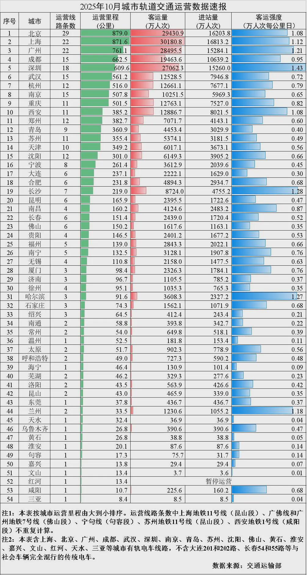 客流强度超过1万人次/公里日的只有8城:深圳、广州、上海、北京、长沙、西安、哈尔滨、兰州。