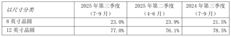 自2022年以来,中芯国际不再公布每种工艺的具体营收数据,而是采用了“晶圆尺寸分类”代替了“技术节点分类”。财报显示,今年第三季度,中芯国际12英寸晶圆收入占比为77%,8英寸晶圆收入占比为23.0%。