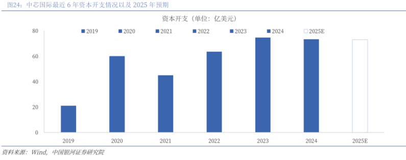数据显示,自2022年以来,中芯国际资本开支持续位于高位。尤其是全球半导体产业明显下滑的2023年,在三星、台积电等巨头纷纷削减资本开支的背景下,中芯国际仍保持了逆势扩张的态势。2023年-2024年,中芯国际资本开支分别为73.79亿美元、73.3亿美元。2025年前三季度,中芯国际资本开支407.68亿元人民币,同比增长1.28%,主要用于12英寸先进工艺生产线建设、8英寸成熟工艺产能扩充,以及光刻机等核心设备采购,以及研发线的搭建和厂房改造。