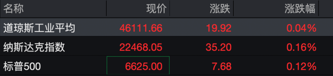 11月19日,美股开盘三大指数小幅上涨,截至发稿,道指涨0.04%,纳指涨0.16%,标普500指数涨0.12%。