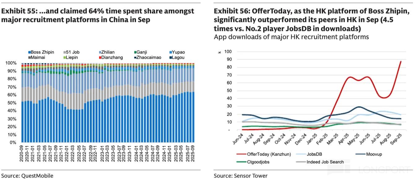 今年9月,高盛上调BOSS直聘(BZ)目标价至28美元,并首次覆盖其H股(2076.HK)评为买入。高盛分析师认为,BOSS直聘凭借对各类求职者和企业的全面覆盖,可实现持续的用户增长和网络效应。同时,BOSS直聘以AI为主导的招聘平台以及高强度的研发投入(占2025年收入的21%)将带来业务机会。