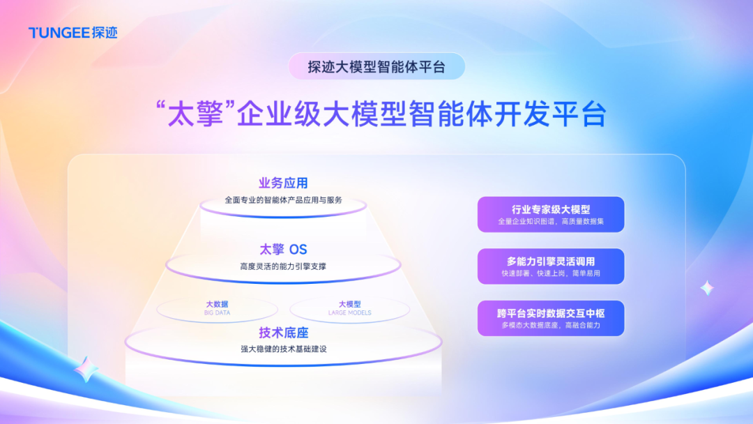 在战略管理方面,制造企业的决策往往依赖经验判断。探迹科技的旷湖大数据平台,或许能为企业提供更准确的市场洞察和竞争分析。而企业级大模型智能体开发平台“太擎”,则可能成为提升组织效率的关键工具,新员工可以通过自然语言交互快速掌握产品知识和业务流程。