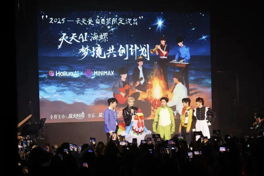 近年来,很多演出用AI升级视觉效果吸引年轻观众,比如TF家族三代“TOP登陆少年”借助AI生成的视频作为演唱会开场内容,张艺兴在鸟巢开演唱会时通过AI实时渲染等技术,让《五牛图》等十余幅传世名画在2200平方米的超大地屏上“活”了起来。相比之下,“天天爱白日梦”艺人演出与海螺AI的合作,又向前迈了一步。