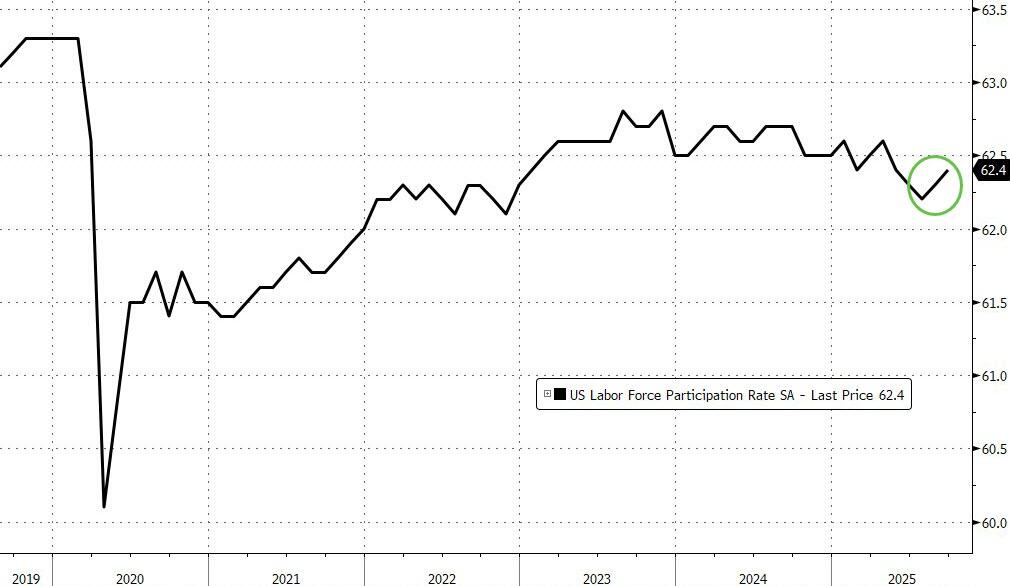 失业率上升至4.4%,部分原因是劳动参与率意外升至62.4%,是5月以来最高水平,为连续第二个月上升。