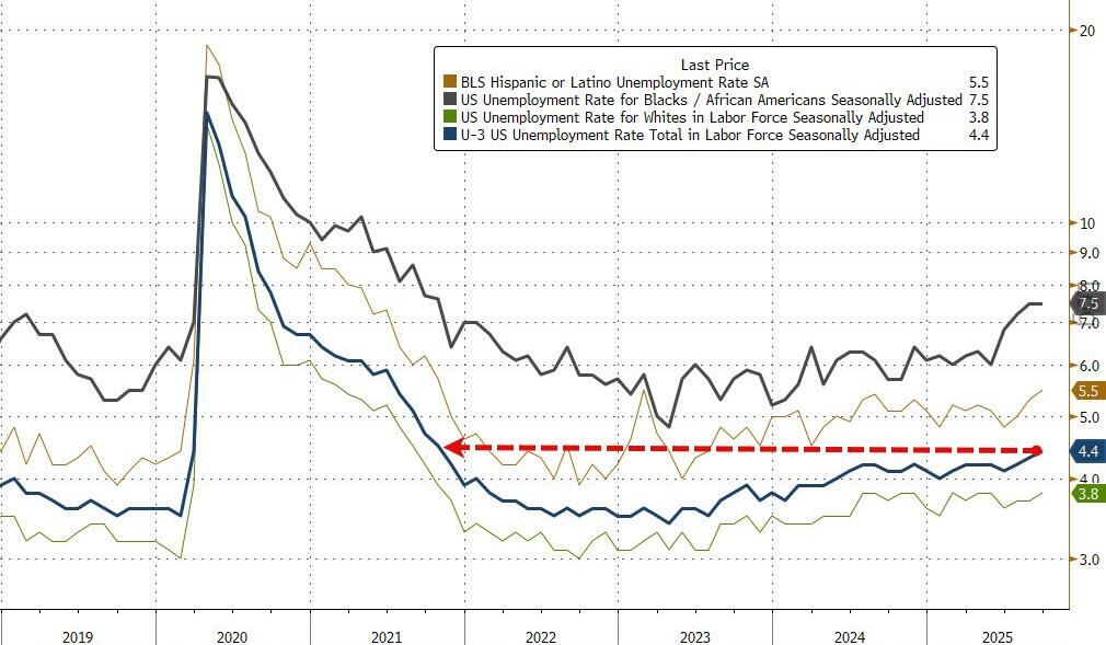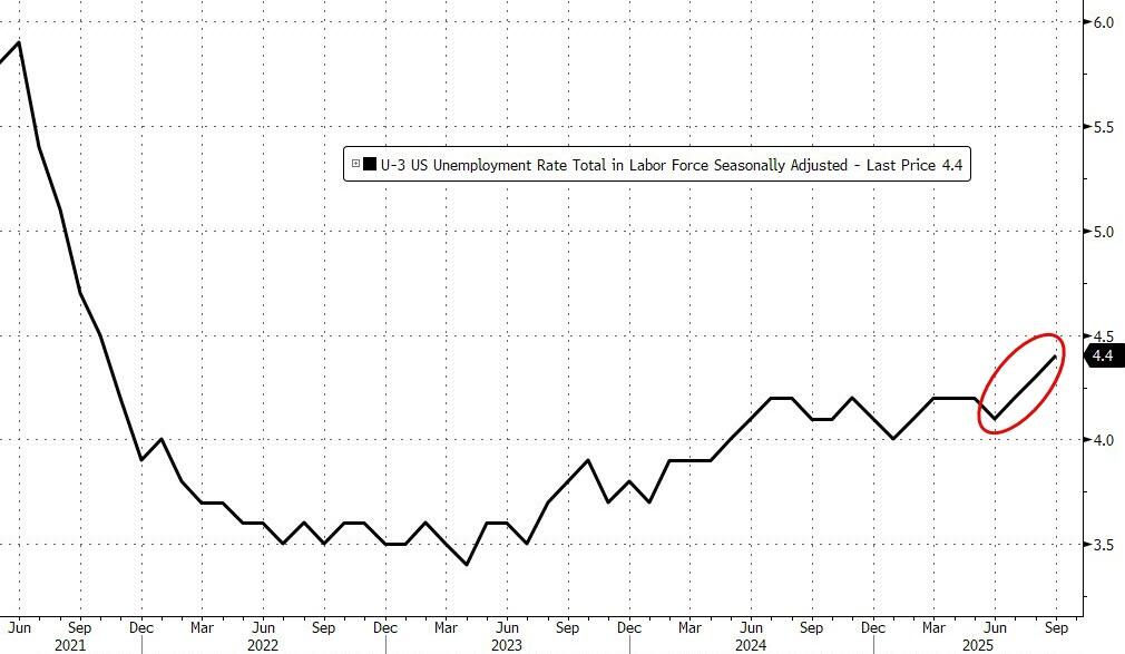 美国9月失业率4.4%,高于预期和前值4.3%,为2021年10月以来最高,主要因为黑人失业率上升。