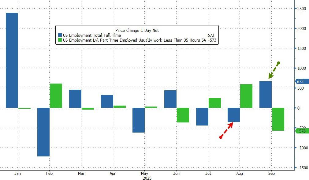 同时,在8月兼职就业激增(全职下降)之后,9月出现完全相反的情况:全职就业大幅增加,兼职就业下滑,创下一年来最大降幅;长期失业者的占比下降;但永久性失业者升至2021年底以来最高。