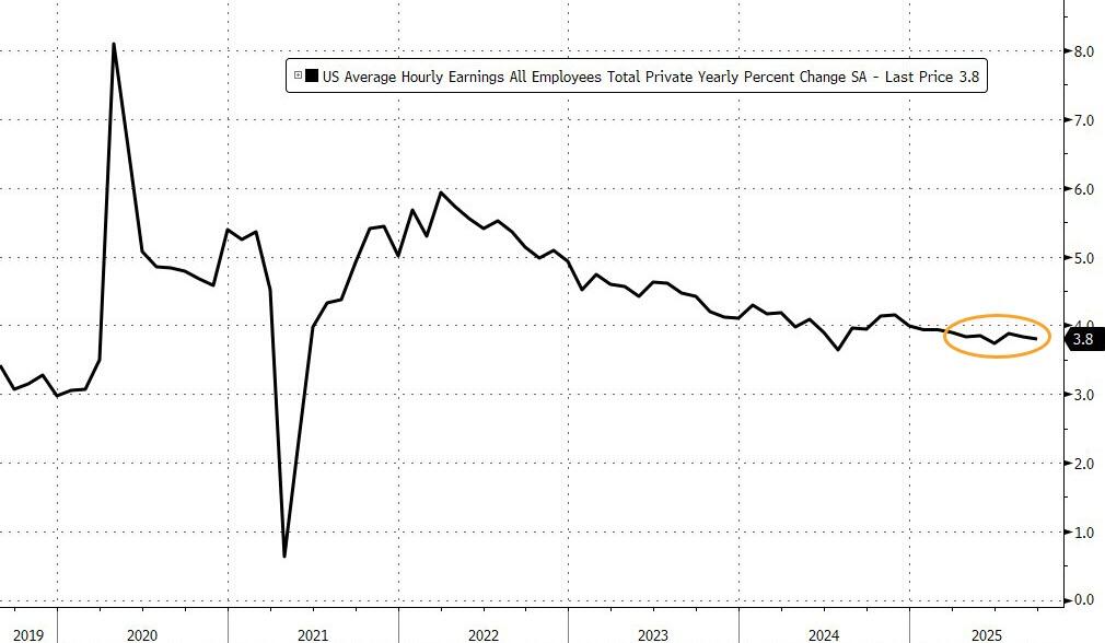 与此同时,平均时薪的月度增幅是自6月以来最小的。经济学家密切关注这一指标,因为它是家庭支出的关键驱动力,而在当前消费越来越分化的情况下,美国最富裕的人群贡献了近一半的总消费。